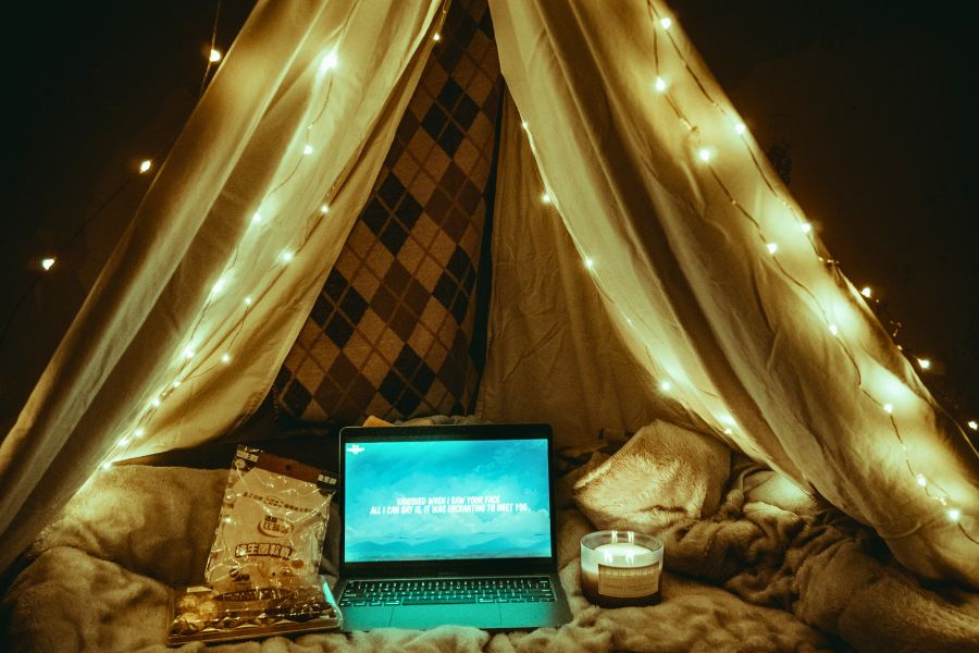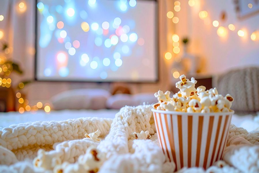 Set the mood in advance by lighting those fairy lights, grabbing a blanket, and pouring a mug of hot cocoa.