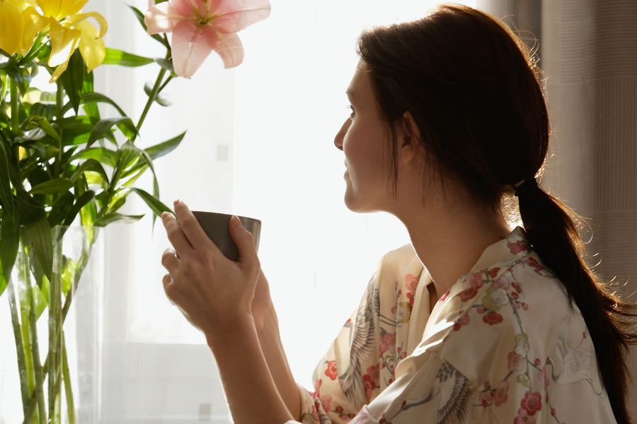 Do a short meditation, enjoy a slow cup of coffee in silence, read a few pages of a self-help book, or step outside and feel the air on your skin.