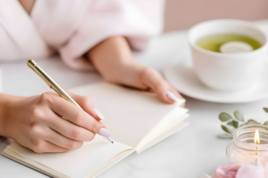 Instead of scrolling before bed, you can end your day by writing a short reflection in your journal. You can answer questions like: