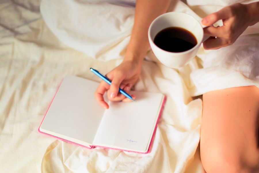 You can then write about your dreams from the night before, things you’re looking forward to during the day, and things you’re worried about (and how you want to approach them).
